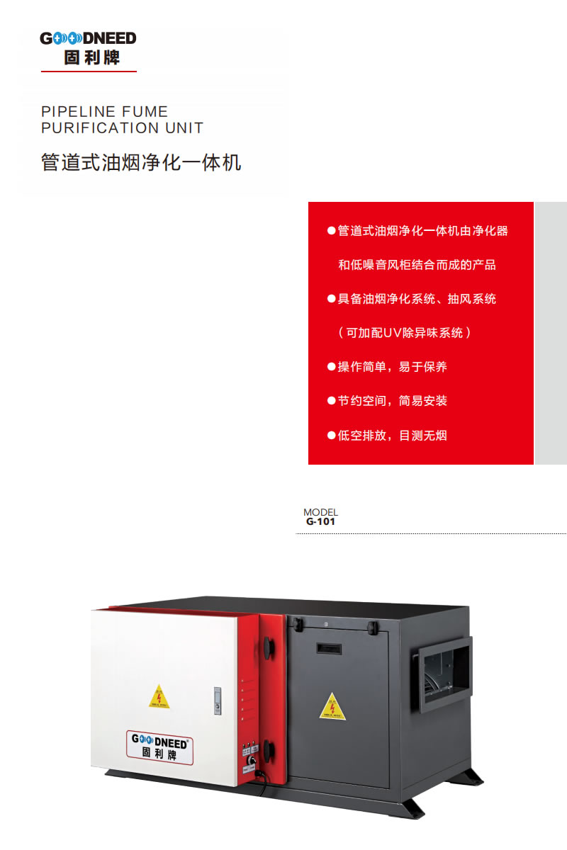 ●管道式油烟净化一体机由净化器和低噪音风柜结合而成的产品